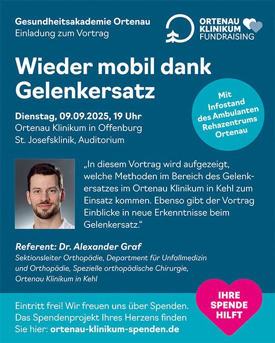 Referent: Dr. Alexander Graf, Sektionsleiter Orthopädie, Department für Unfallmedizin und Orthopädie, Spezielle orthopädische Chirurgie, Ortenau Klinikum in Kehl